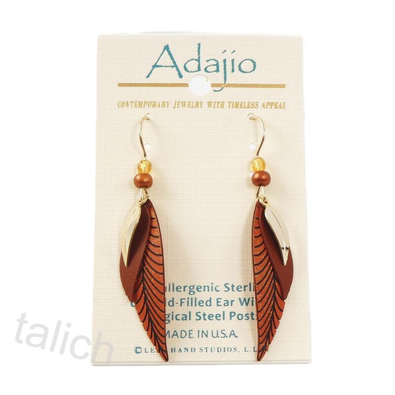 ADAJIO EARRINGS - 3 PART SLENDER COPPER LEAVES listed in: