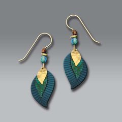 ADAJIO EARRINGS - THREE-PART TEAL BLUE AND GOLD PLATED LEAVES listed in:
