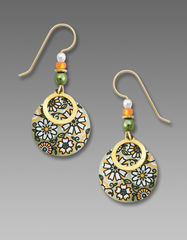 ADAJIO EARRINGS - SOFT OLIVE AND APRICOT RETRO FLORAL DISC WITH GOLD PLATED CIRCLE listed in: