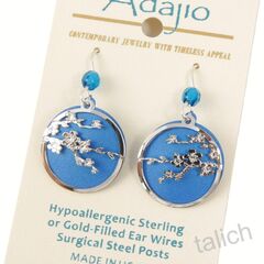 ADAJIO EARRINGS - SILVER TONE CHERRY BLOSSOMS ON BLUE DISC listed in: