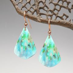 DC DESIGNS - BLUE GREEN ABSTRACT ART TEARDROP EARRINGS 2NJE listed in: