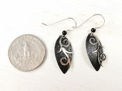 ADAJIO EARRINGS - BLACK POINTED OVAL WITH SHINY SILVER TONE TENDRILS OVERLAY listed in: