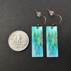 DC DESIGNS - BLUE GREEN ABSTRACT ART LONG RECTANGLE EARRINGS 2NCE listed in:
