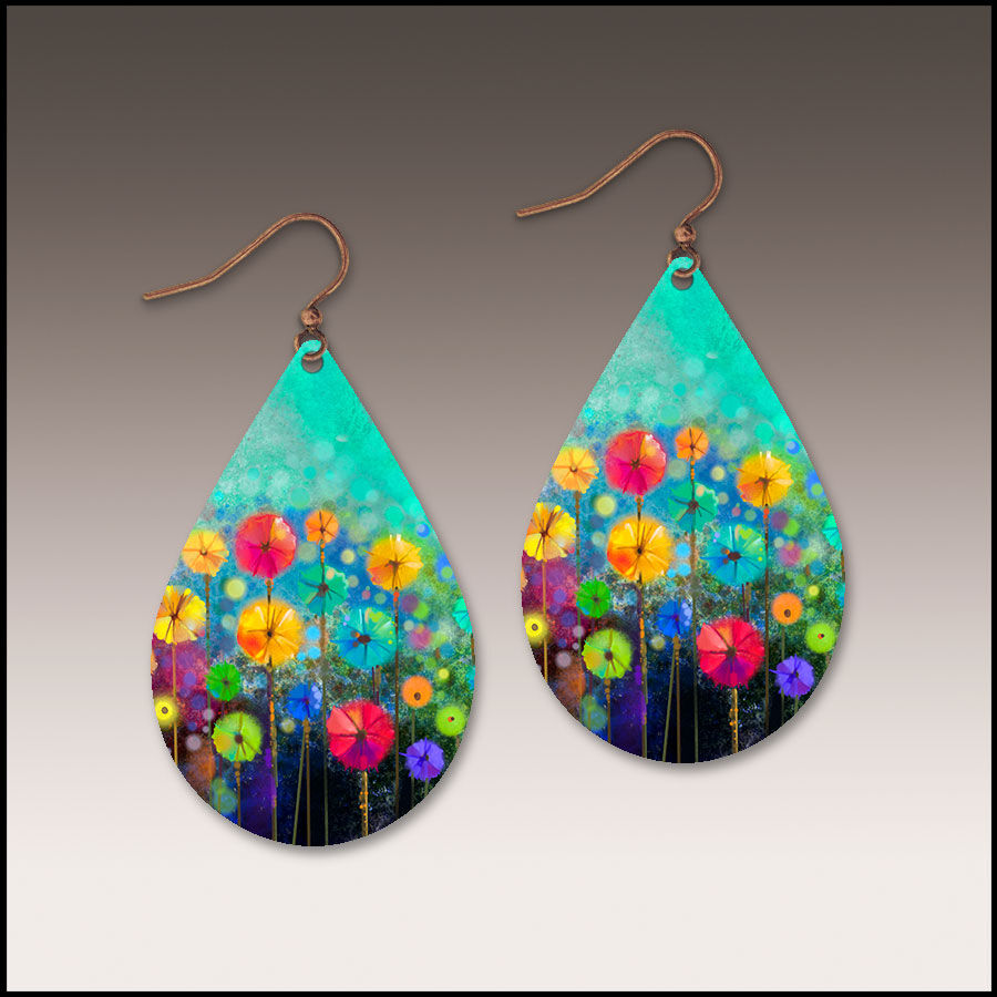DC DESIGNS - WATERCOLOR MEADOW FLOWERS LARGE TEARDROP EARRINGS listed in: