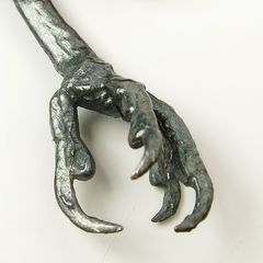 Three dimensional bird foot with natural red coral drop. Great details. Striking contrast of red coral and black oxidized sterling silver. Beautiful unique piece with Gothic style.